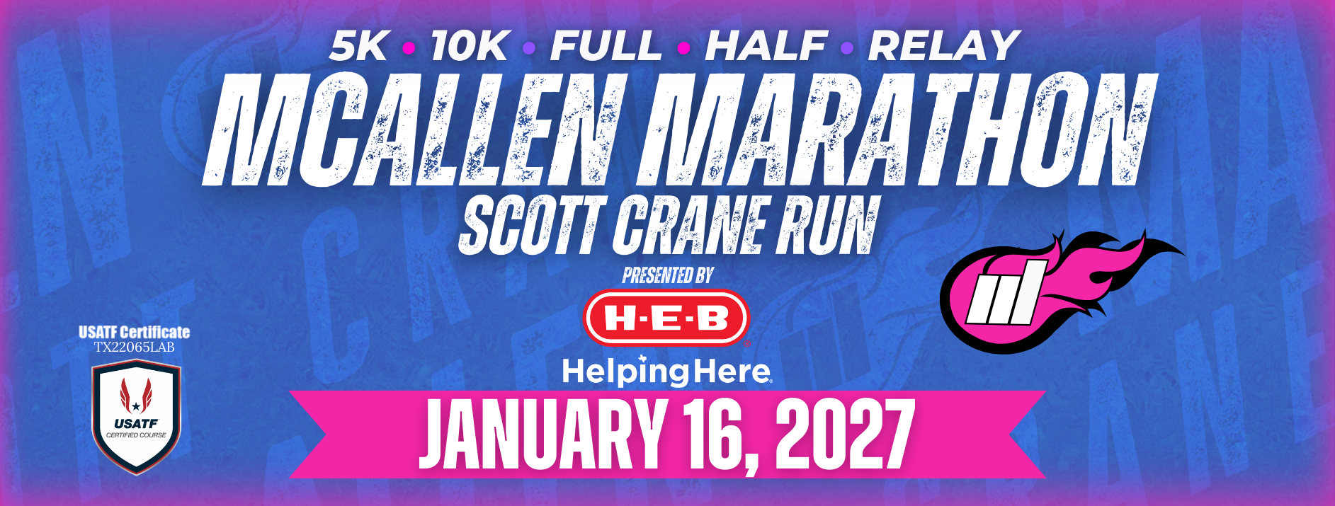 - By registering, Participant recognizes that the McAllen Marathon Scott Crane Run, McAllen Marathon Running Series, and McAllen Marathon Jr. Running Series, that requests must be emailed to event administrator no later than 14 days prior to race day at Marathon@mcallen.net. NO TRANSFER REQUESTS OR REFUNDS WILL BE ACCEPTED AFTER THE 14 DAY DEADLINE.